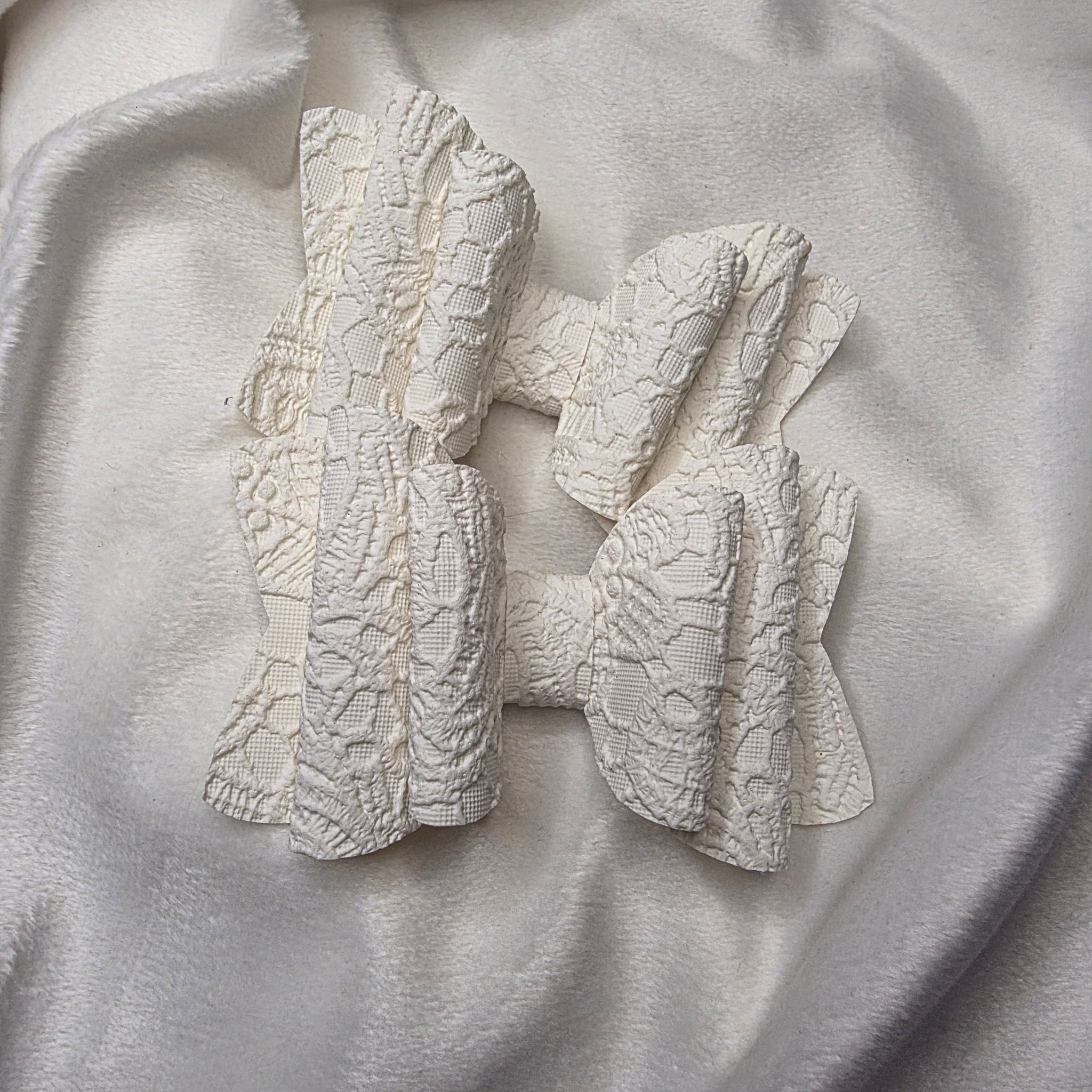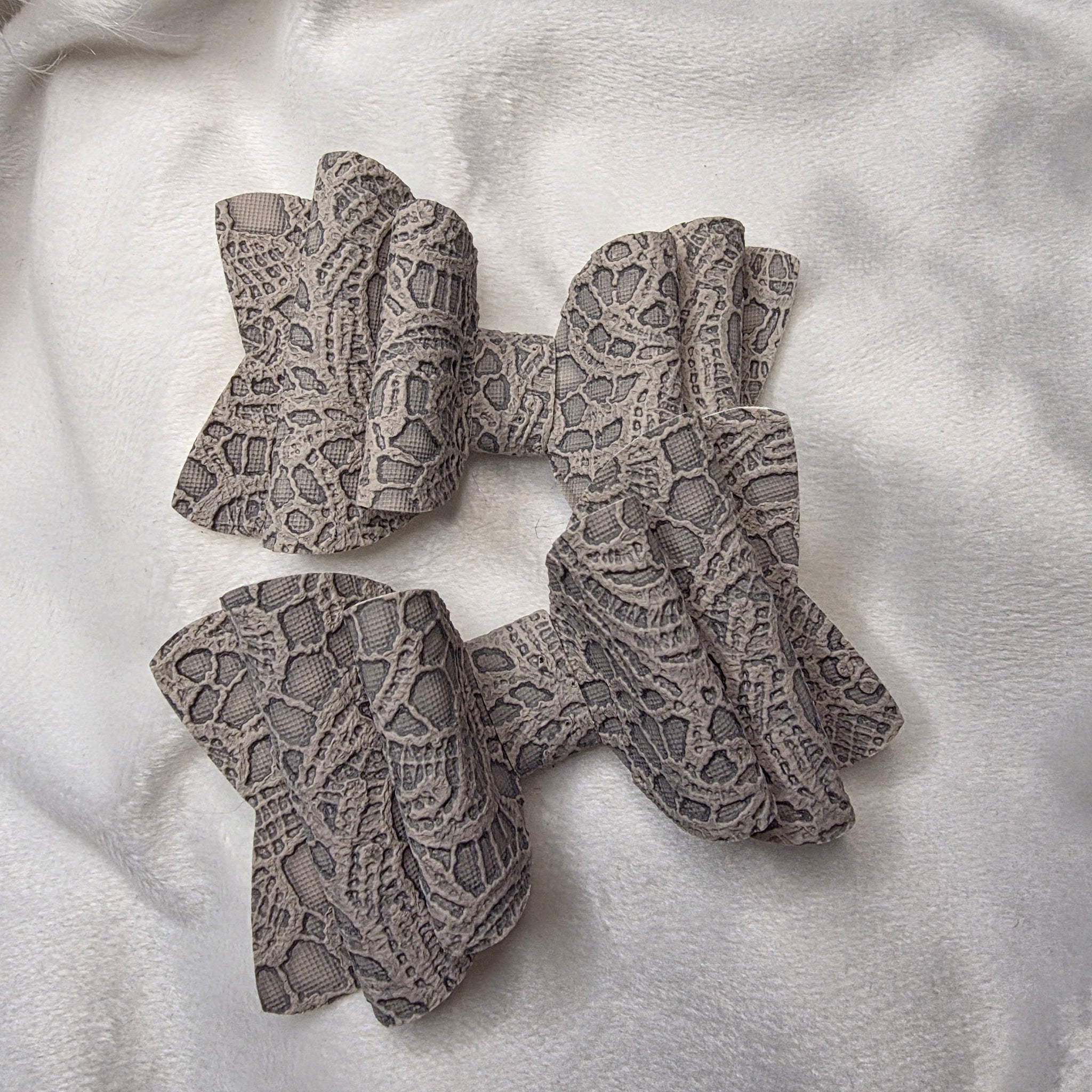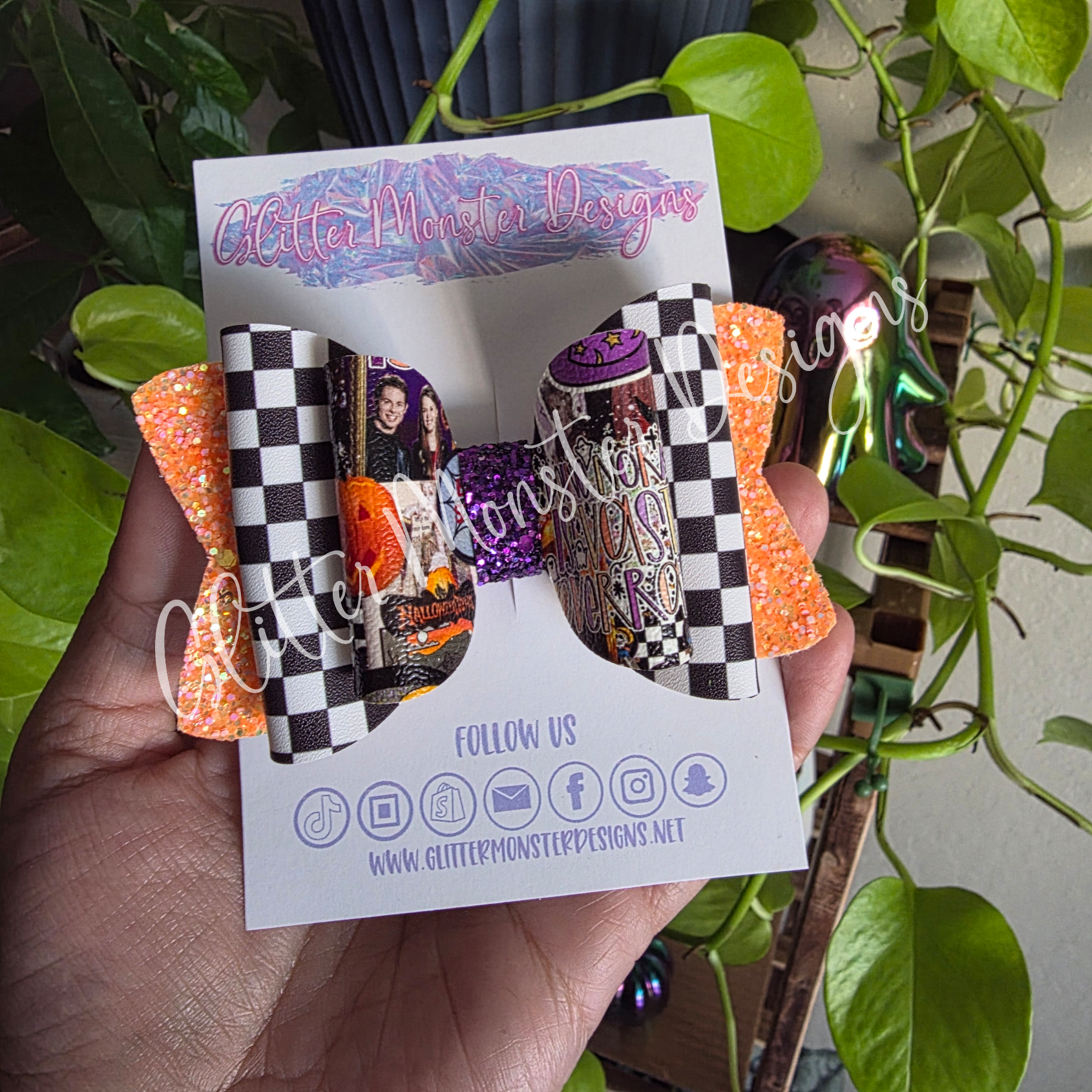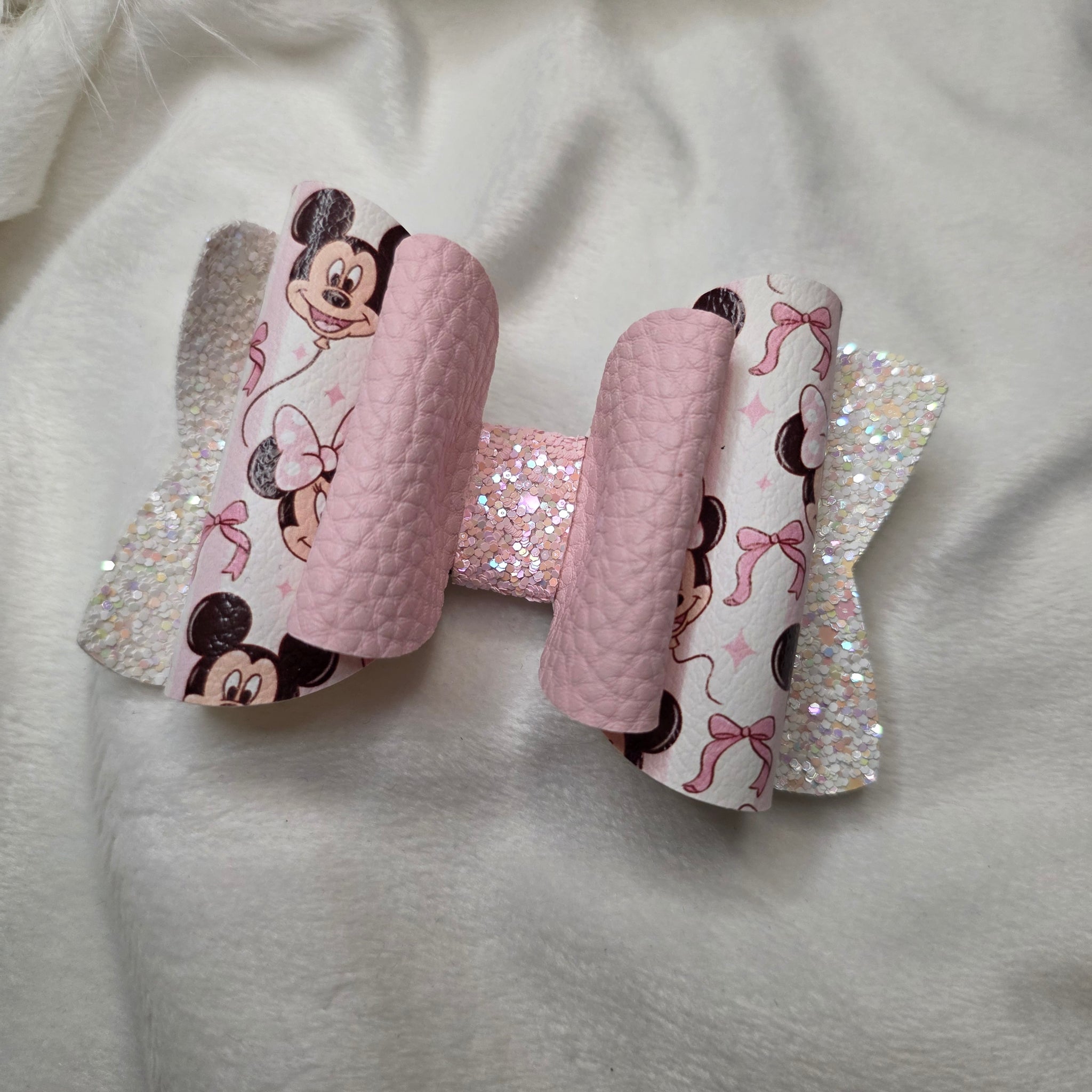 These double stacked 4" bows are one of our best sellers! Not only are the cute, fun, and mostly glitter. They are a little bigger, height wise then the single stacked and if you like extra sparkle. Then these are PERFECT! They are 4" wide from tail to tail, on an alligator clip. With teeth, and very durable!