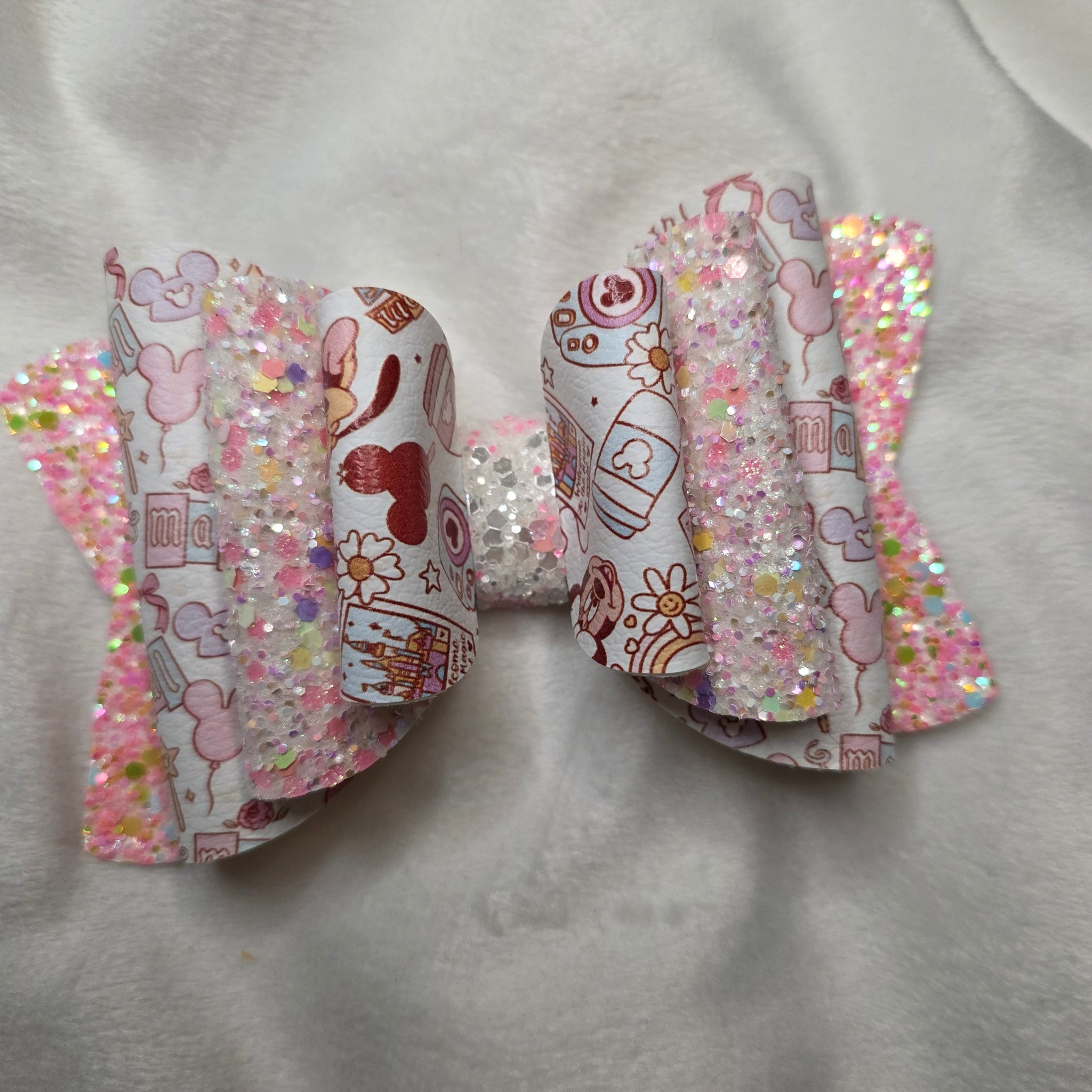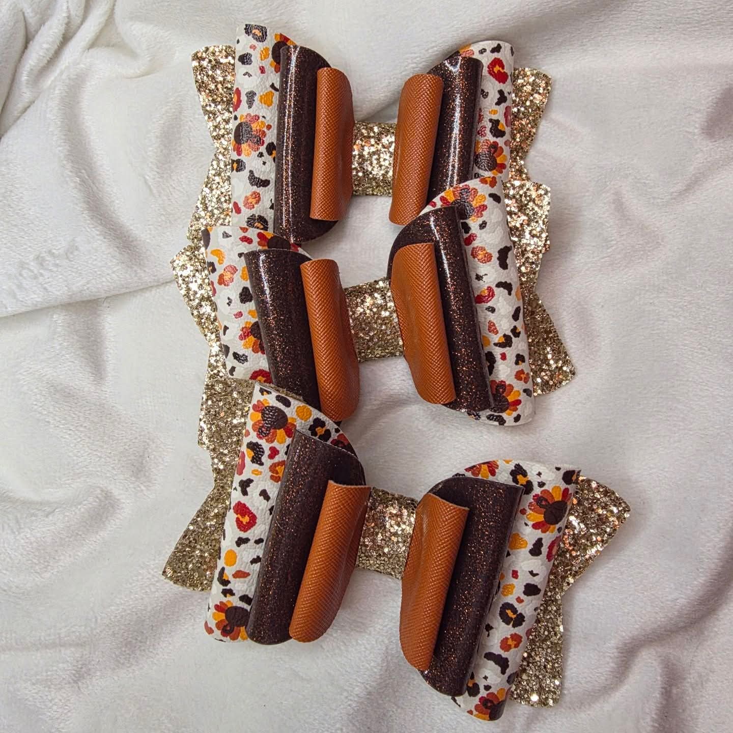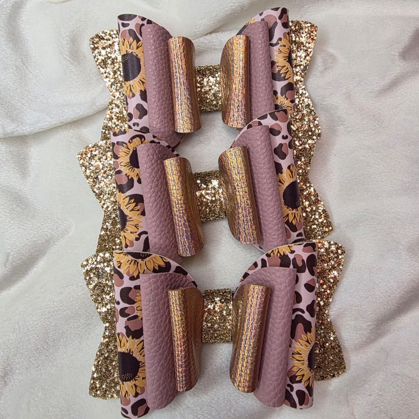 These TRIPLE stacked 6" bows are one of our best sellers! Not only are the cute, fun, and mostly glitter. They are a MUCH bigger, height wise then the double stacked and if you like extra sparkle. Then these are PERFECT! They are 6" wide from tail to tail, on an alligator clip. With teeth, and very durable!