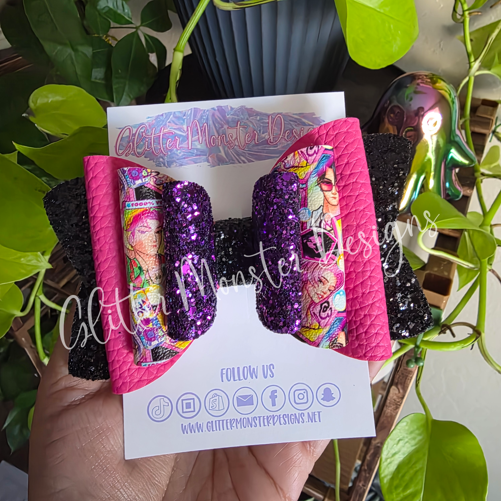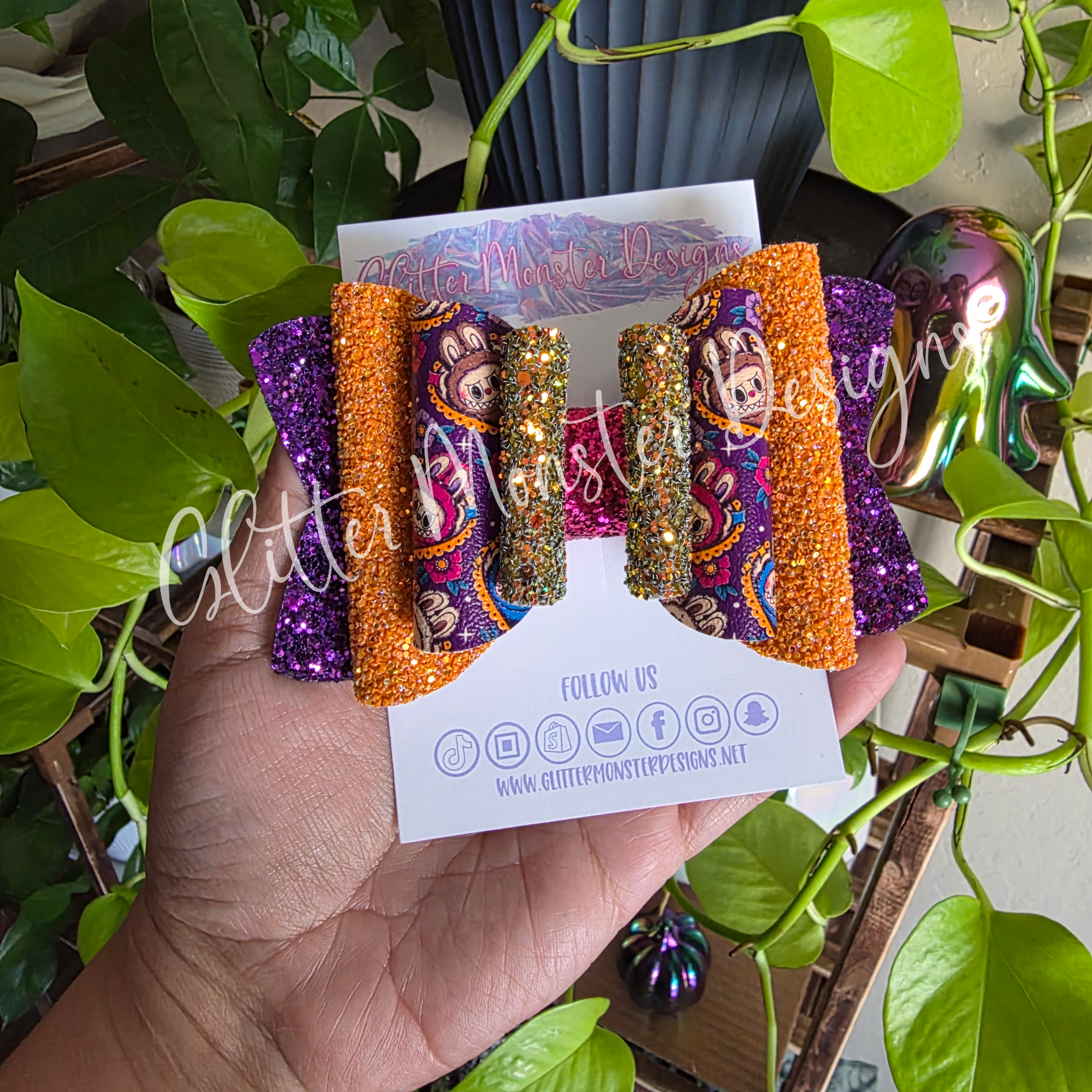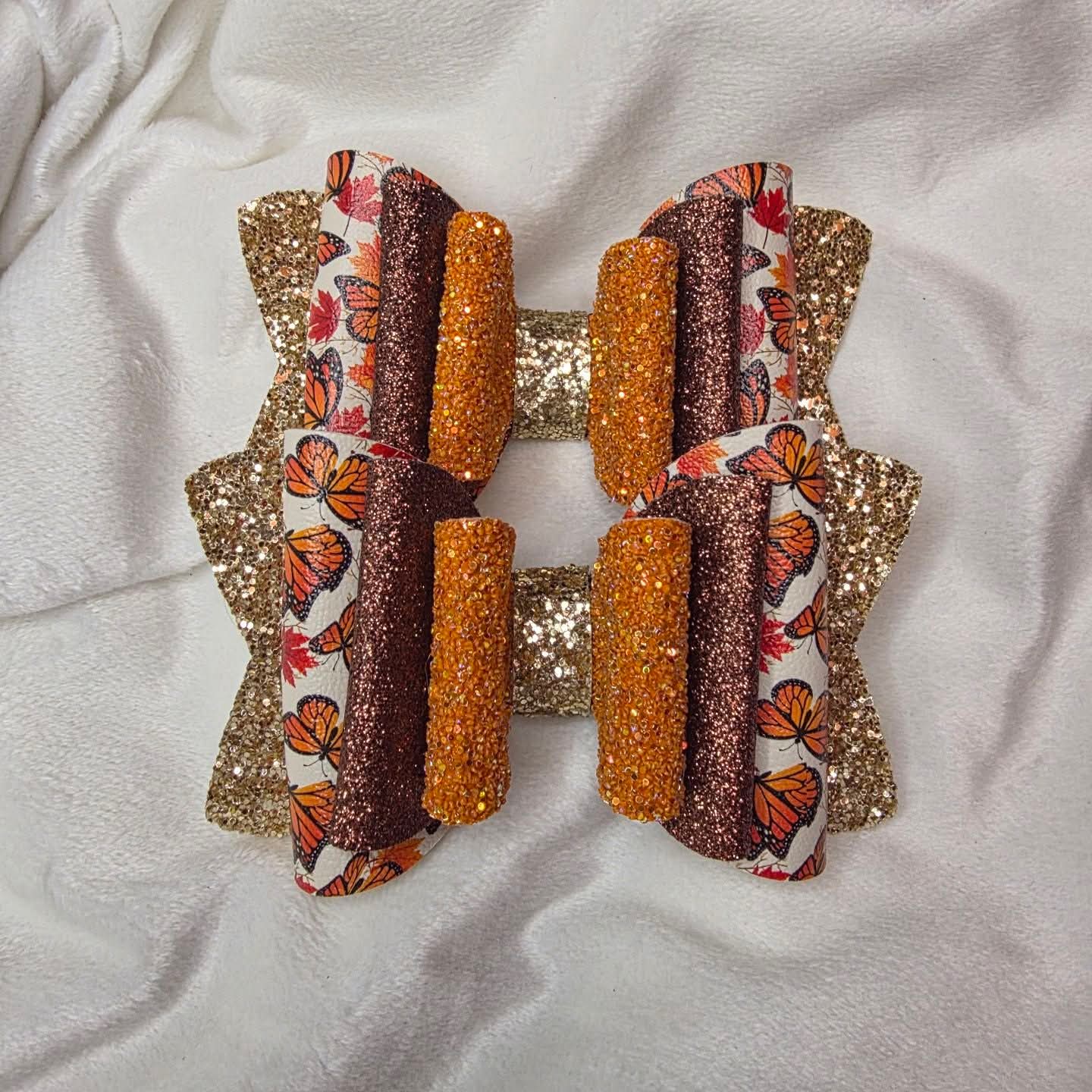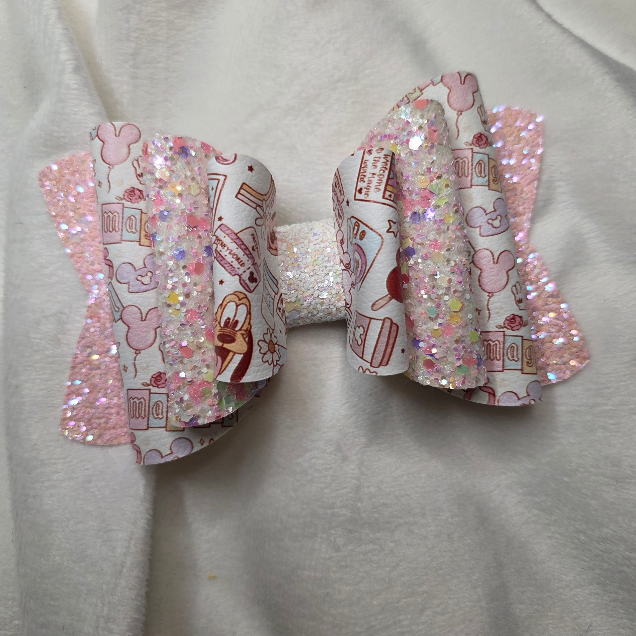 These TRIPLE stacked 6" bows are one of our best sellers! Not only are the cute, fun, and mostly glitter. They are a MUCH bigger, height wise then the double stacked and if you like extra sparkle. Then these are PERFECT! They are 6" wide from tail to tail, on an alligator clip. With teeth, and very durable!